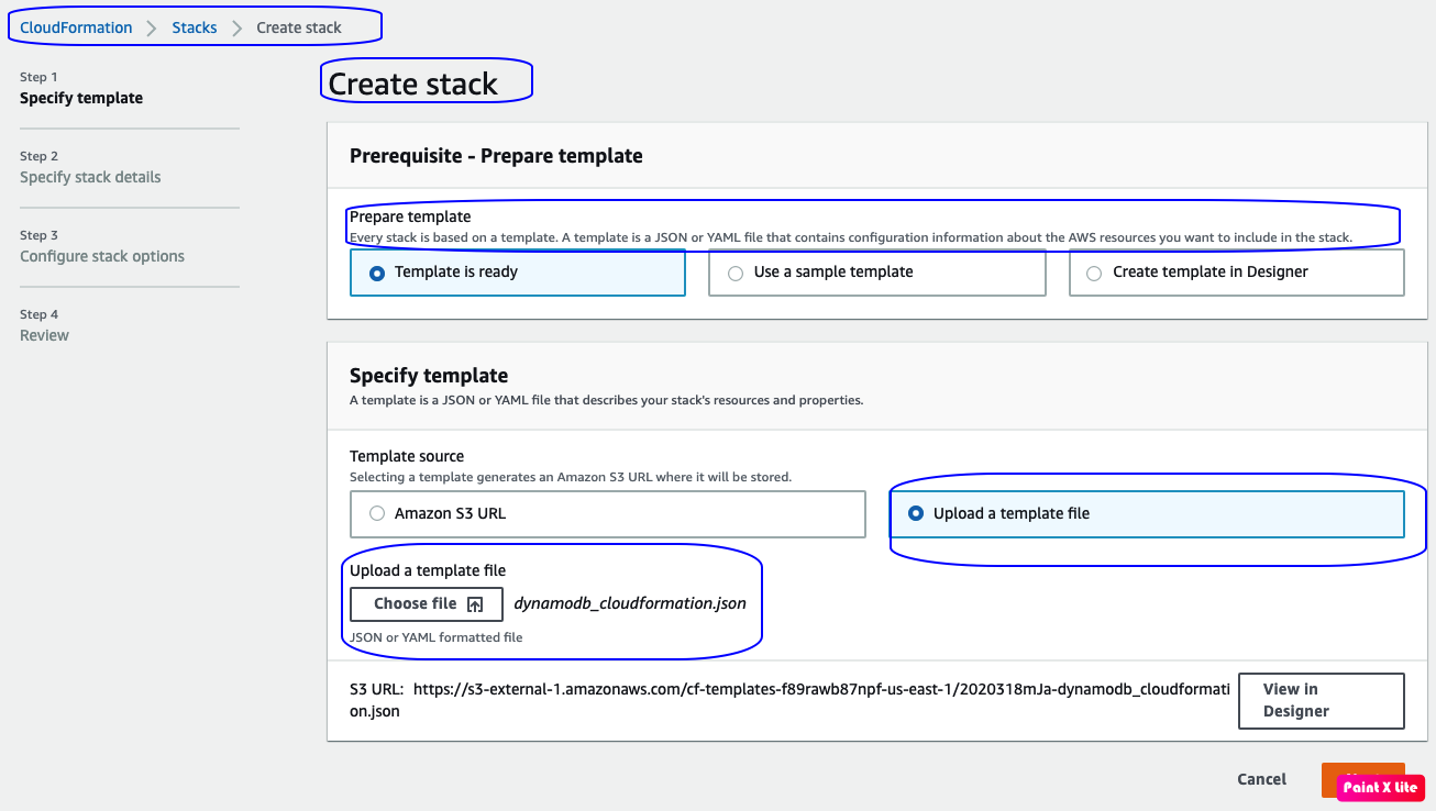 1 | {This template demonstrates creation of DynamoDB table.- optional when creating/updating stack"HashKeyElementName" : { 'myDynamoDBTable' is the Logical ID for the resource being created here"myDynamoDBTable" : { - the resource being created, can be referred in resources and outputs "TableName" : {